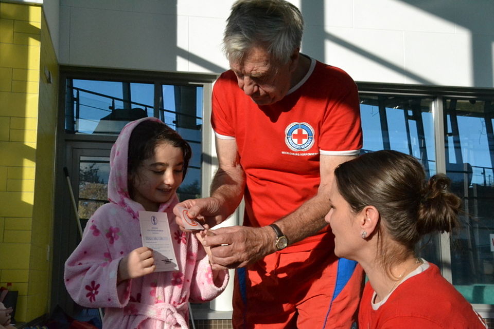 Bild 3: Rasha ist stolz, dass sie das Seepferdchen geschafft hat. Foto: Caroline Awe